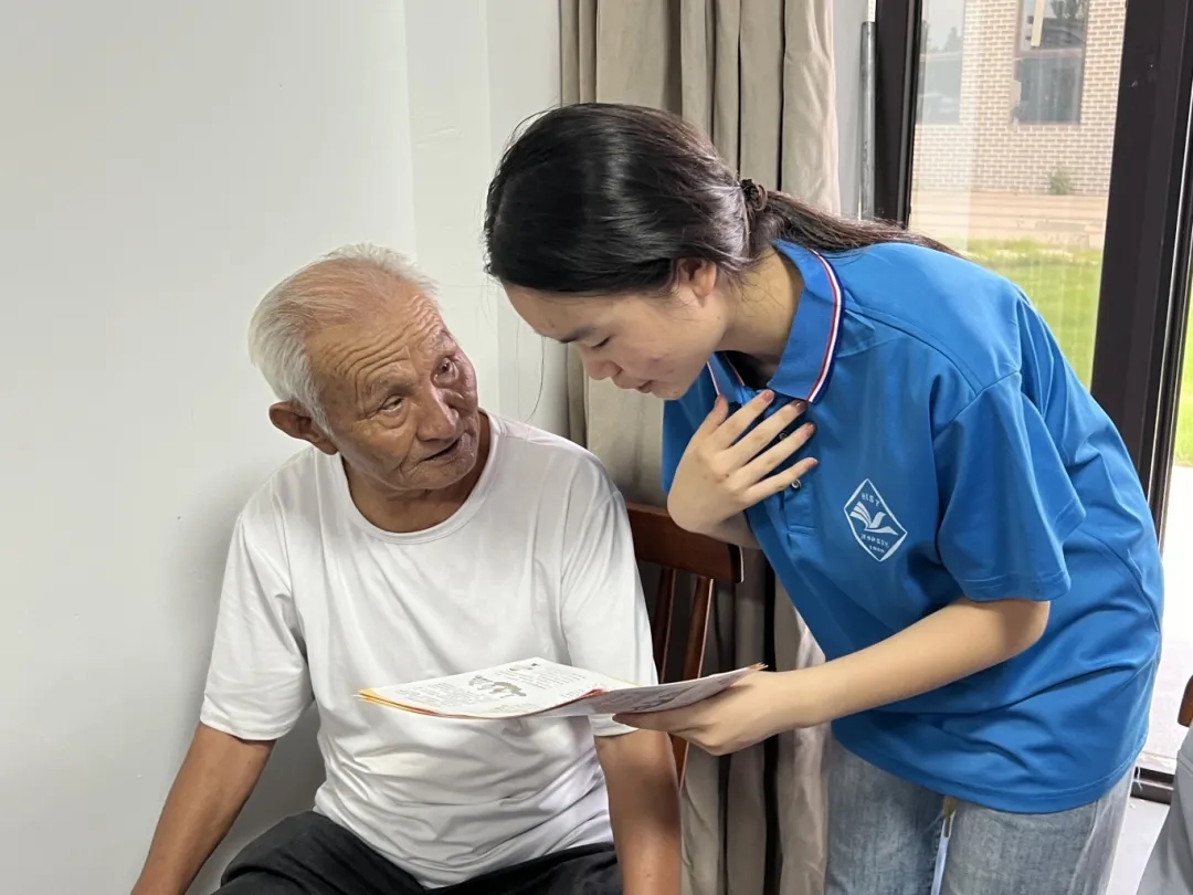 “甘霖计划”大学生义务支教服务队在商水县汤庄乡西赵桥村进行支教活动期间,走进养老院开展“志愿敬老行,关爱传真情”服务活动。