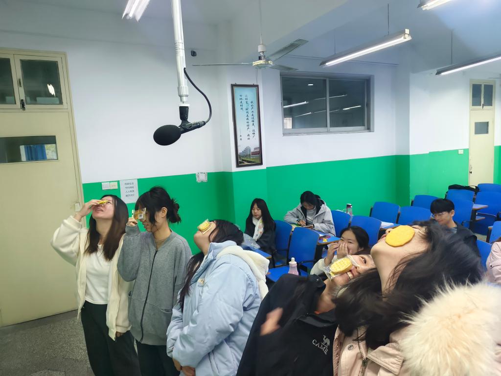 该班首先开展了“我与心理游戏有个约会”的趣味心理游戏活动。在“微笑饼干大作战”游戏中,参与者们摩拳擦掌,跃跃欲试。随着裁判一声令下,大家小心翼翼地调整头部角度,努力扭动面部肌肉,在紧张又欢乐的氛围中,选手们八仙过海各显神通,为成为第一个吃到饼干的幸运儿而努力。接着,“123,看这边”游戏考验了大家的反应能力和团队协作精神,选手们全神贯注,一方迅速出招改变方向,另一方则要快速反应。有人因敏捷的动作获胜而欢呼,有人因失误的滑稽模样逗乐全场。欢笑声此起彼伏,整个教室都充满了生机与活力。