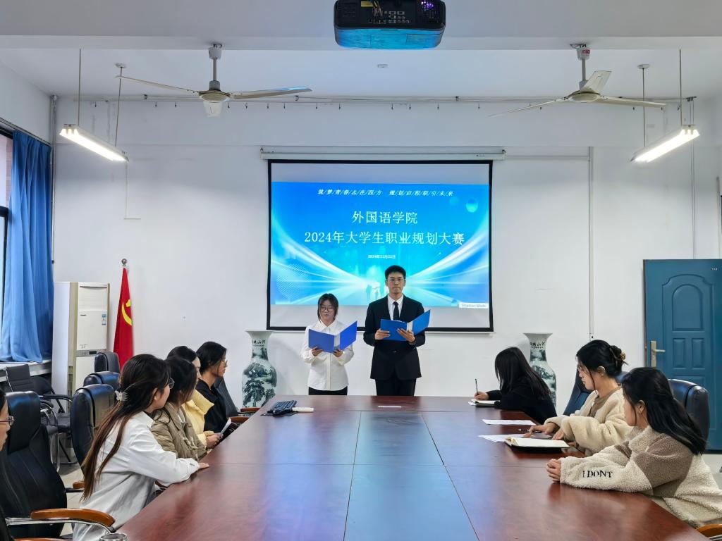 在7211会议室举办2024年大学生职业规划大赛。学院团委老师参加活动并担任评委。