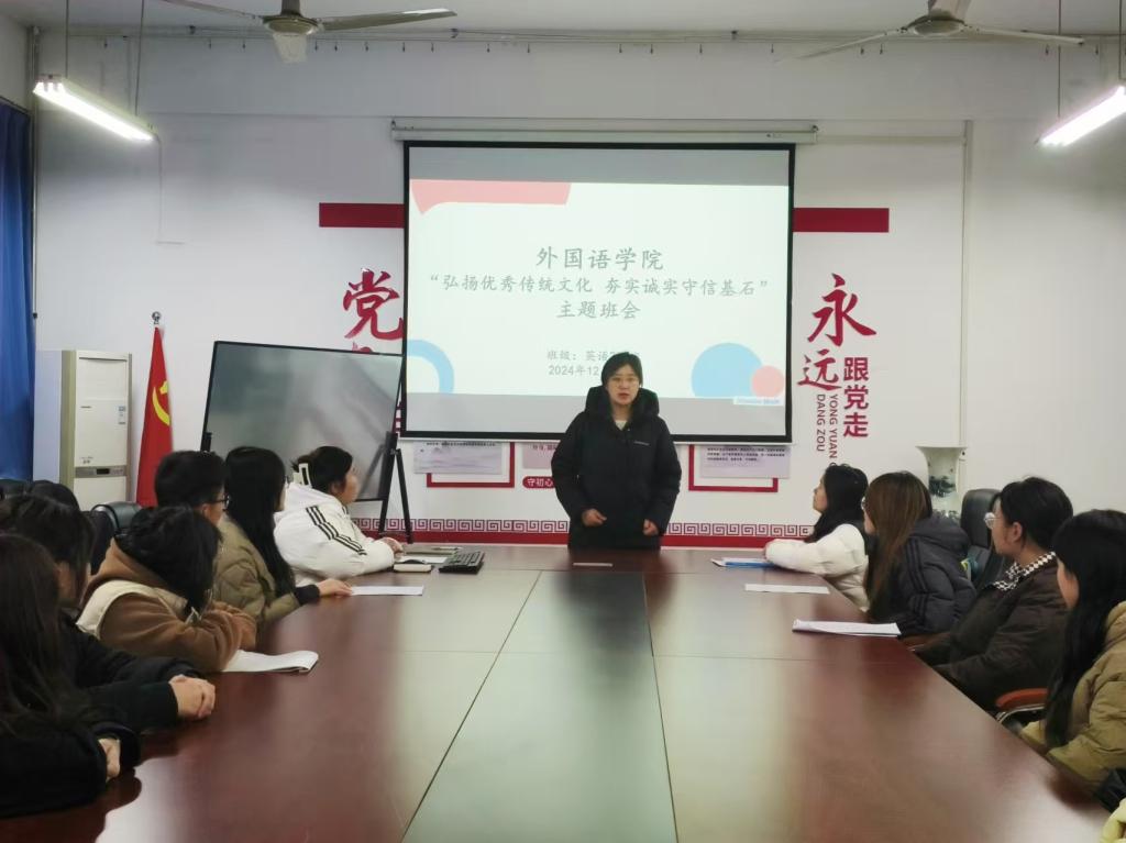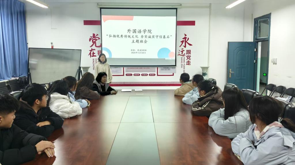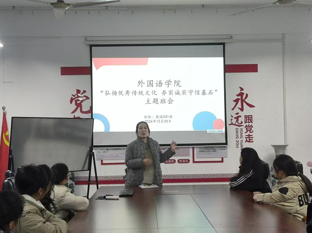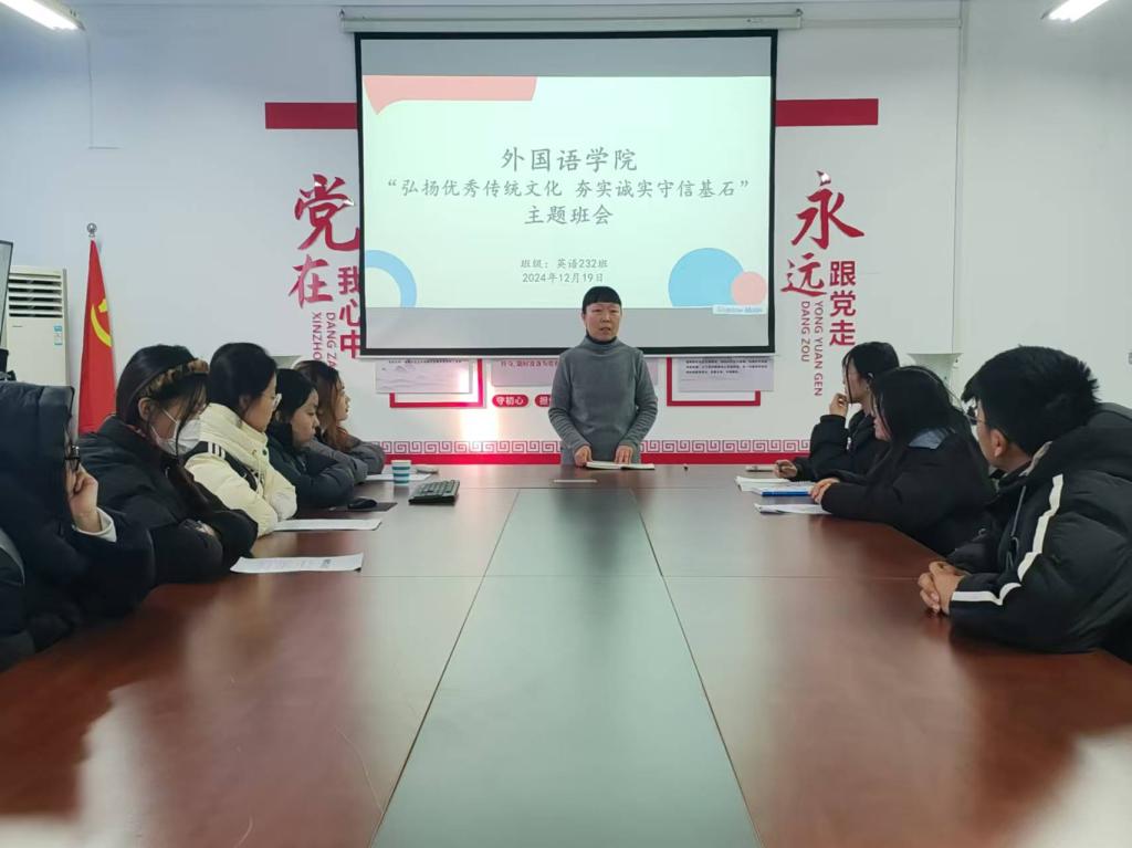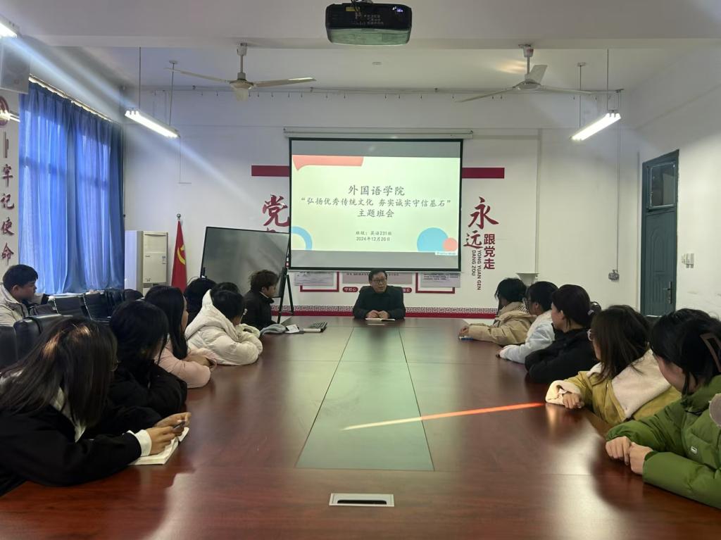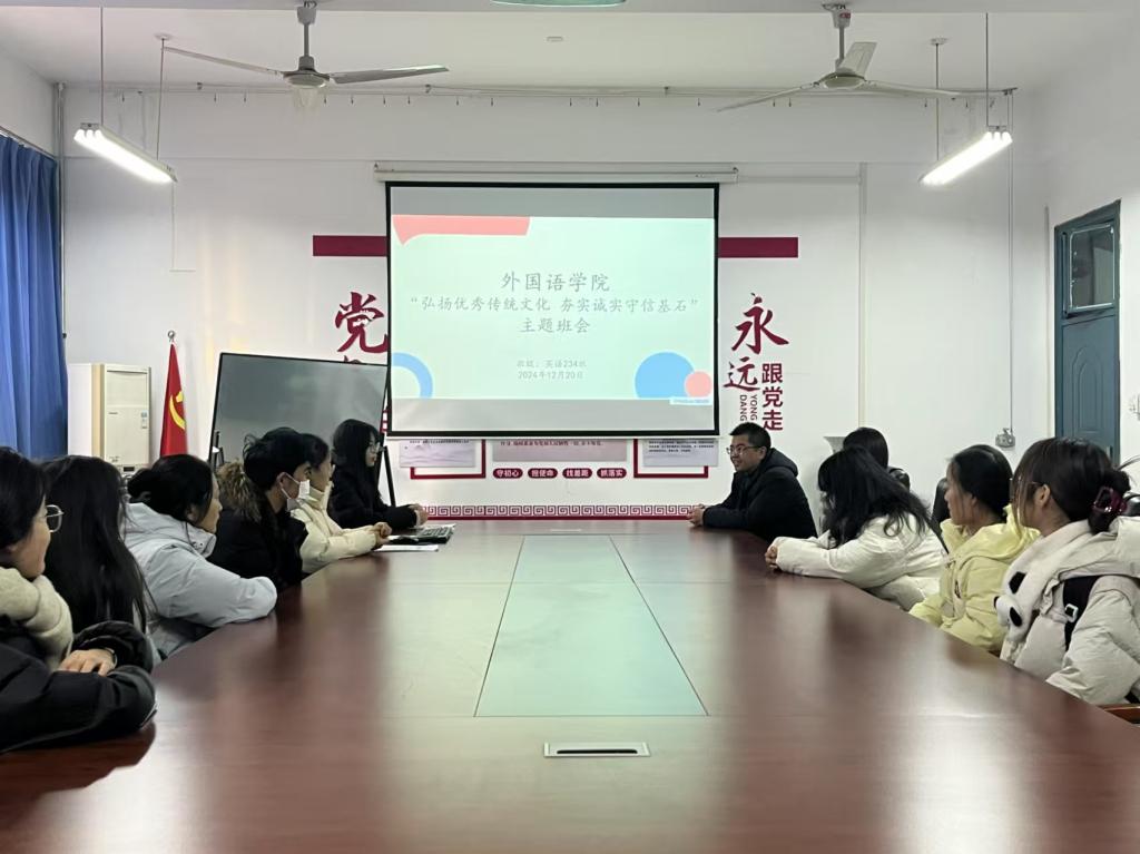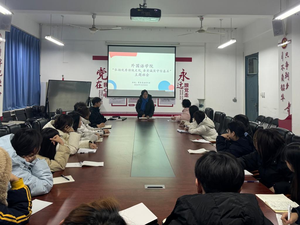 组织各班召开“弘扬优秀传统文化 夯实诚实守信基石”主题班会。各年级辅导员与各班班主任参加了班会。