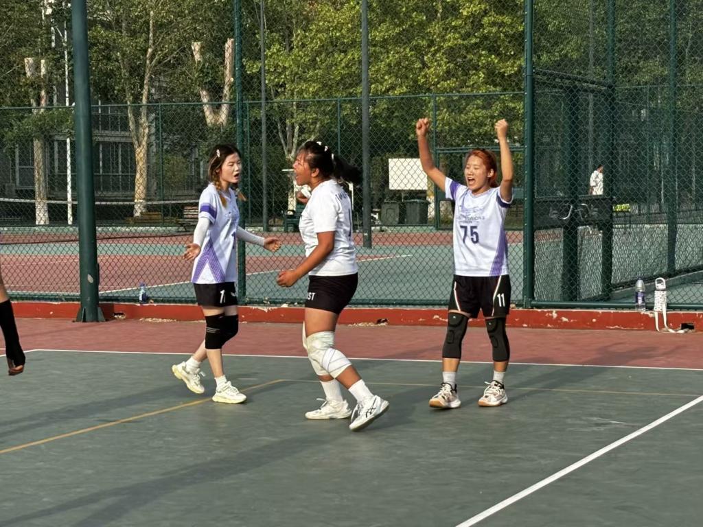 小组赛时,我院在与食品学院女排对决时遗憾落败,但在半决赛时再次狭路相逢,我院以3:0的绝对优势胜出。决赛中面对劲敌化学化工学院,起初以大比分0:2落后,但我院女排不畏逆境,关键时刻,调整战术、稳扎稳打,用精准的发球撕开对手的防线,以铁壁般的防守化解重扣,再次以默契配合组织犀利反击!每一分都拼到极限,每一次救球都燃爆全场!从第三局的绝地反击,到第四局的乘胜追击,再到决胜局的势如破竹——外院女排连扳三局,完美逆转!