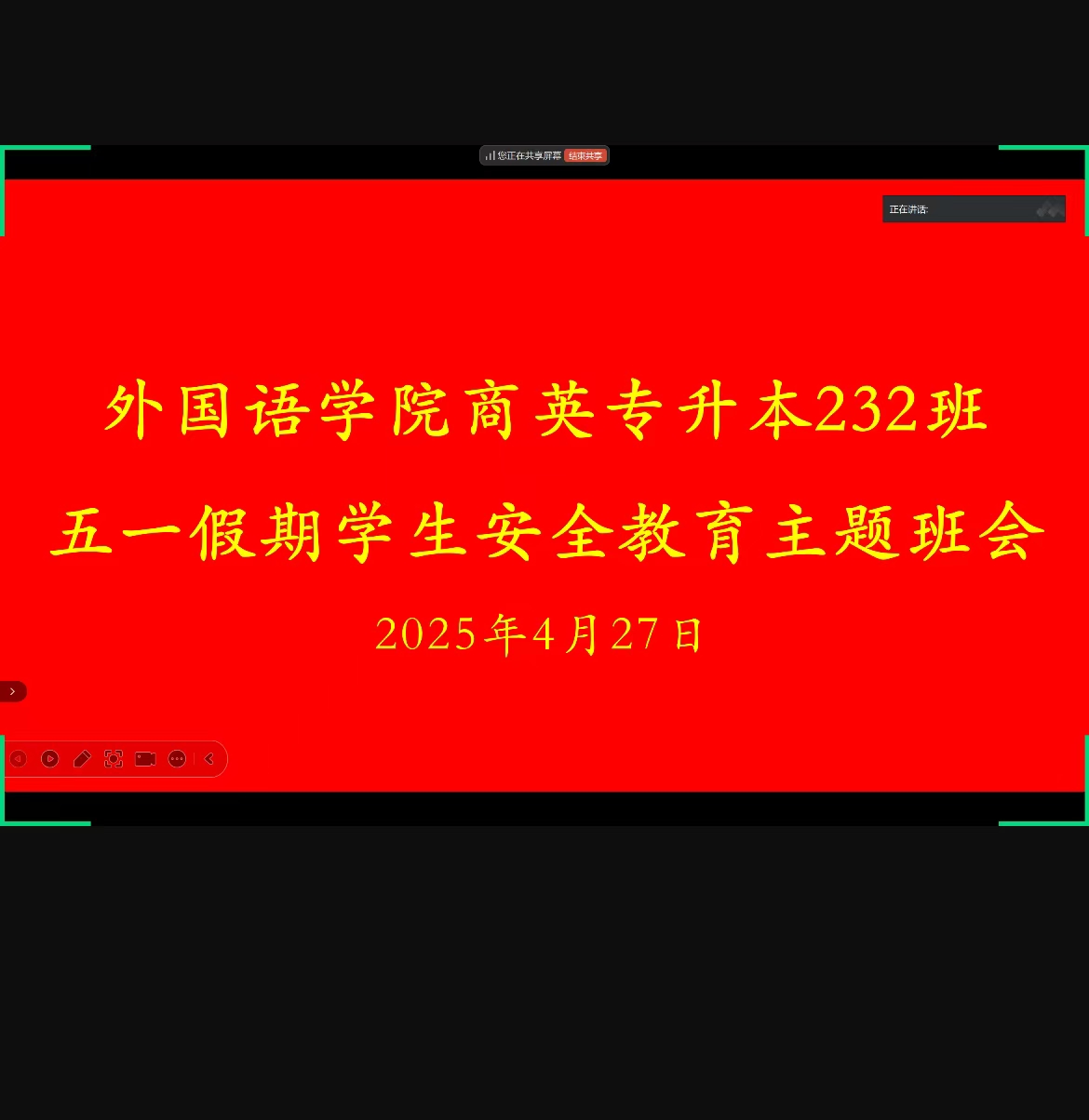 4月27至30日,污污漫画 以班级为单位组织召开五一假期学生安全教育主题班会。