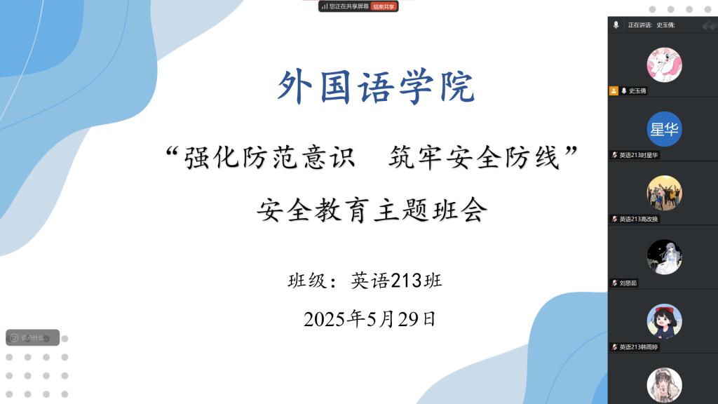5月26日至30日,污污漫画 以班级为单位组织研究生和本科生召开了“强化防范意识筑牢安全防线”安全教育主题班会。辅导员、各班班主任参加了此次班会。