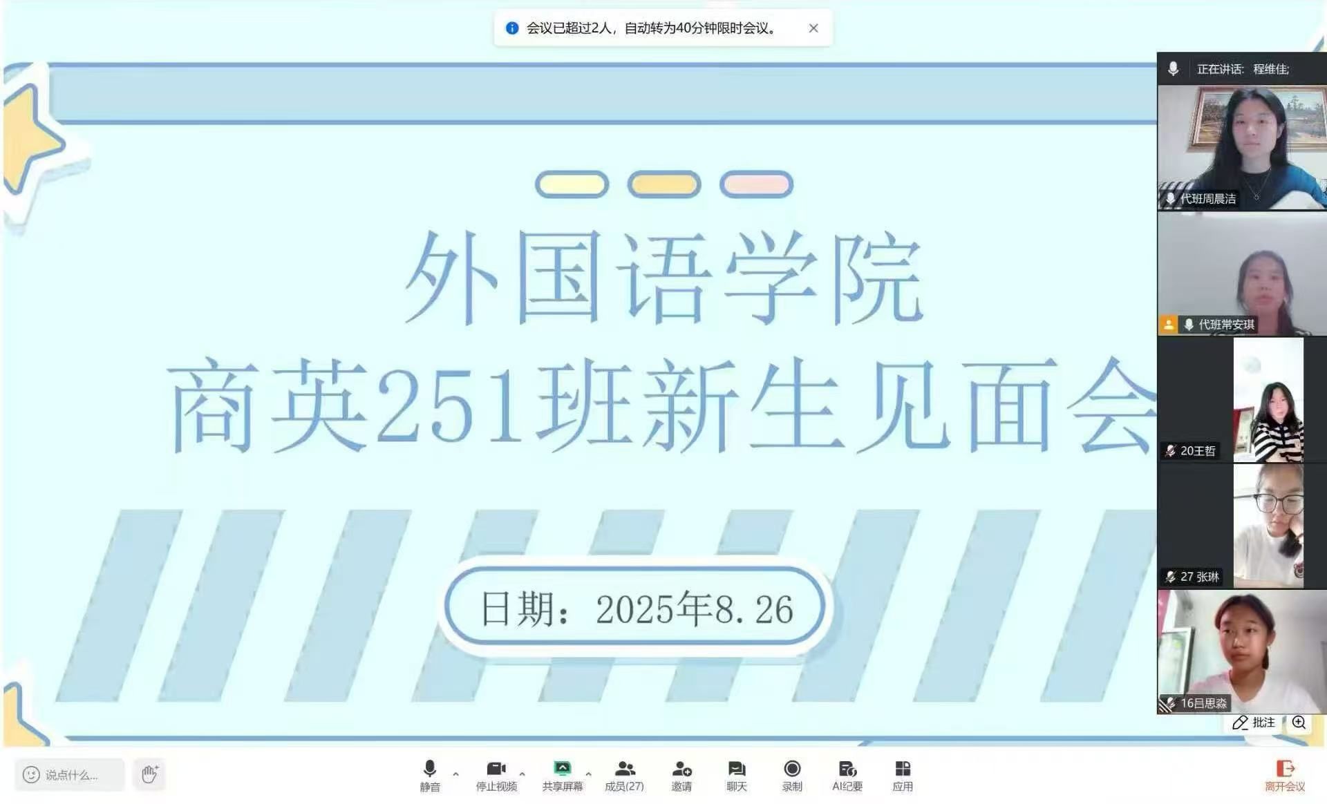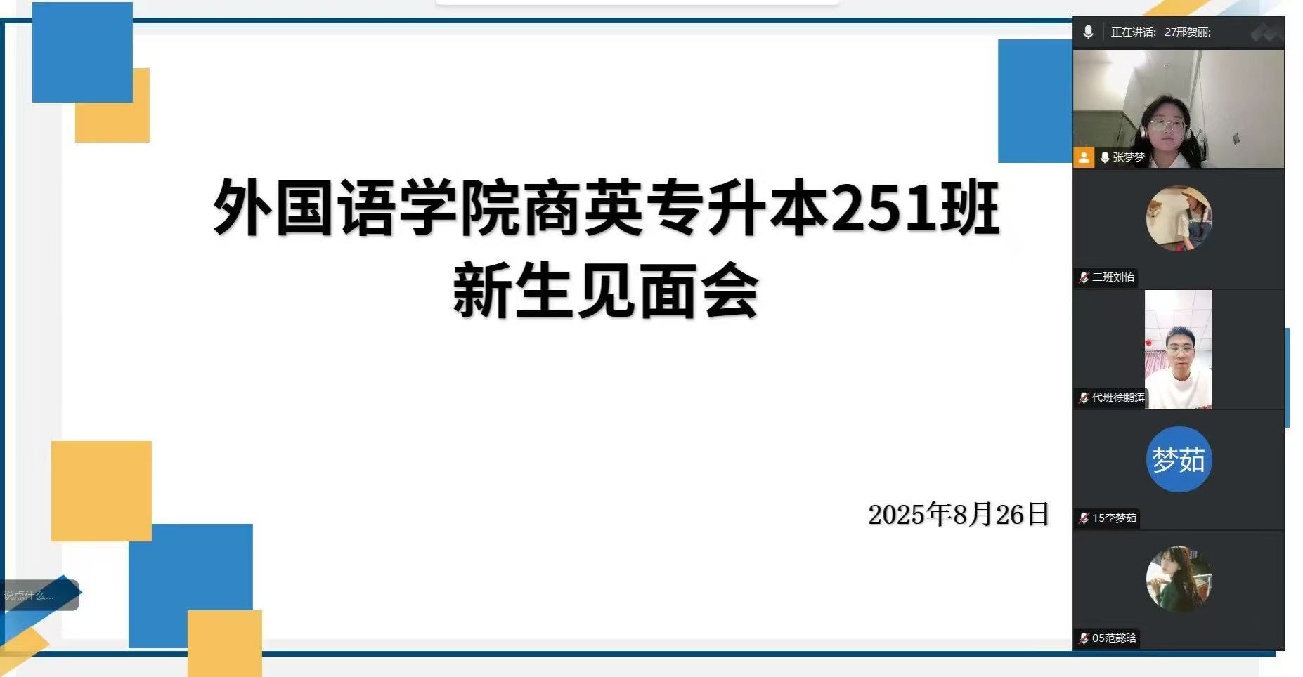组织2025级新生代理班主任线上召开2025级新生见面会。