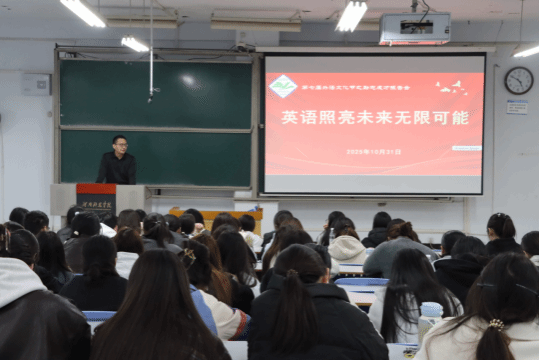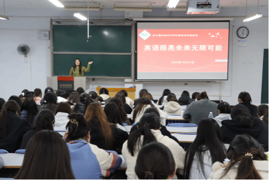 特邀2010级优秀校友、执业律师张豪杰,2014级优秀校友、高中教师李丹丹,在十合六举行第七届外语文化节之励志成才报告会。本次报告会由学院相关负责人主持,2023级与2024级学生参加本次活动。