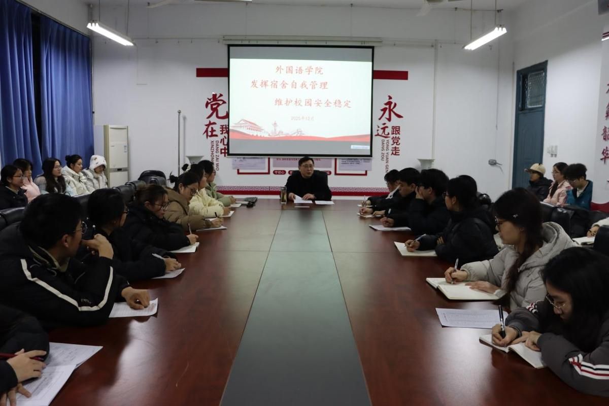 本次培训会以“发挥宿舍自我管理作用、维护校园安全稳定”为主题。学院党委负责人结合典型宿舍安全案例,深刻剖析了宿舍安全对校园稳定运行、学生健康成长的重要意义,引导与会人员树牢安全防范意识。