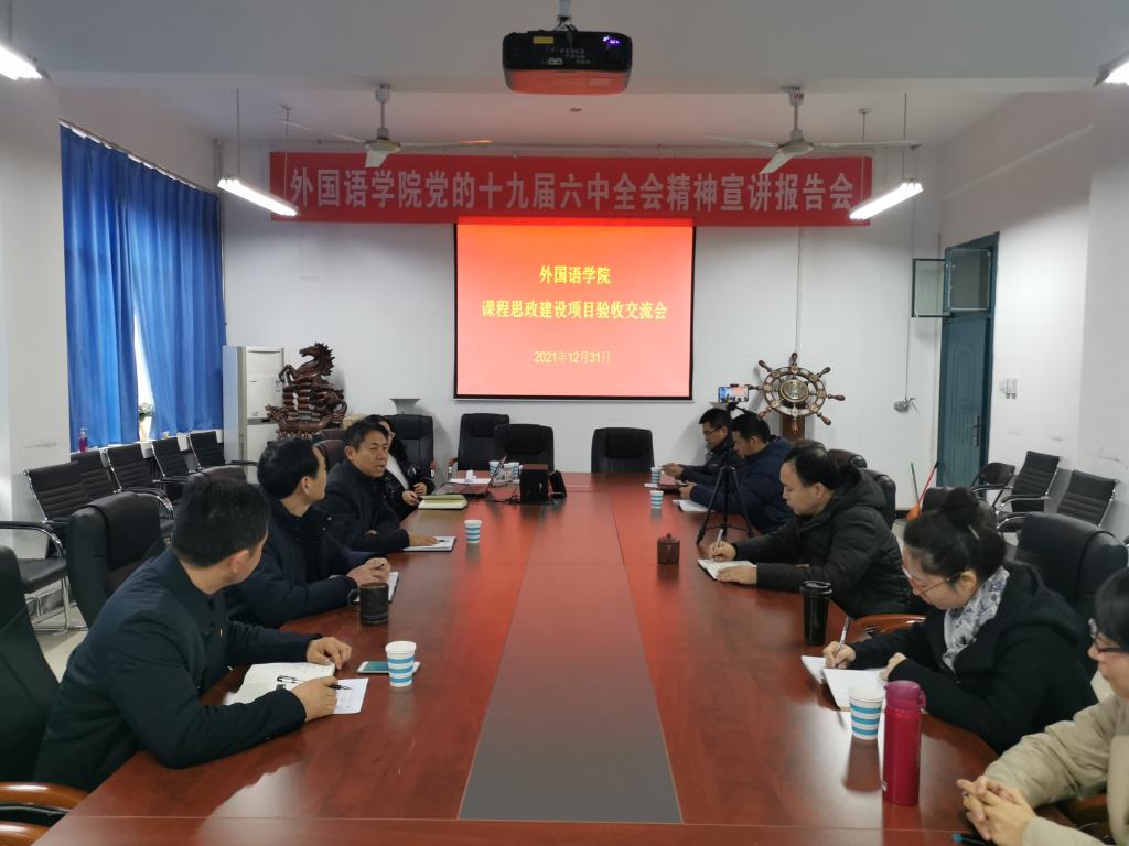 2021年课程思政建设工作计划》要求,我院于12月31日上午在7211会议室召开了校级课程思政建设项目验收交流会。会议采取线上线下相结合的方式举行。学院党政领导、教师代表、辅导员及马克思主义学院副院长刘中元组成的验收专家组到场参加,其他老师以线上直播的方式观看了会议。