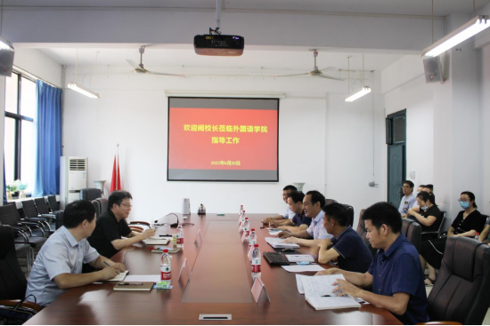 语言实验室进行实地考察,并听取了李会民院长对学院近5年发展与建设的汇报,与参会教师分别就教学科研、专业建设、学生培养等方面情况进行了交流。