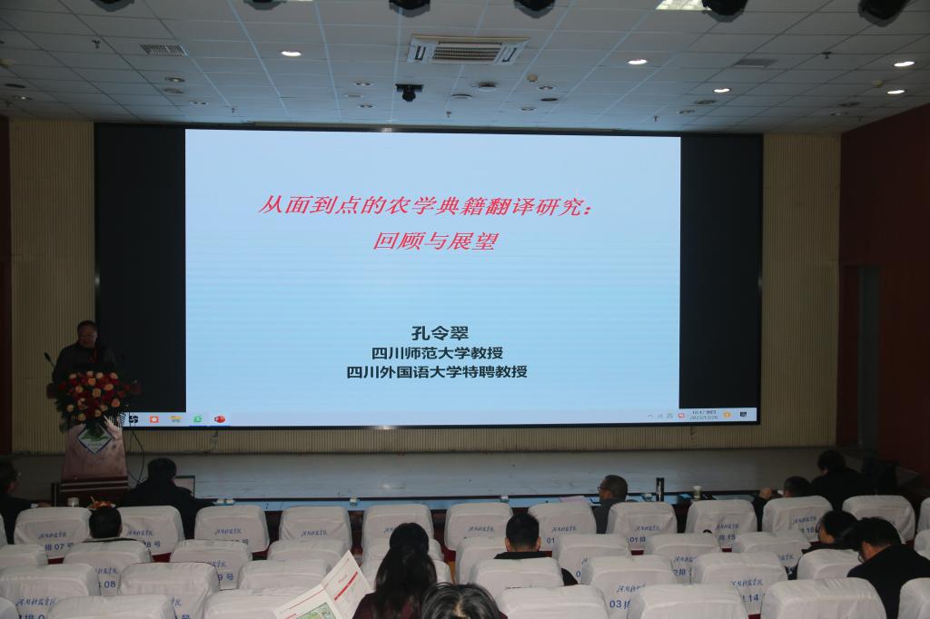 四川师范大学孔令翠教授以“从面到点的农业典籍翻译研究:回顾与展望”为题做了主旨发言。