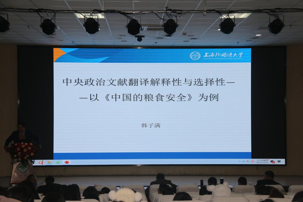 上海外国语大学韩子满教授以“中央政治文献翻译解释性与选择性——以《中国的粮食安全》为例”为题做了主旨发言。