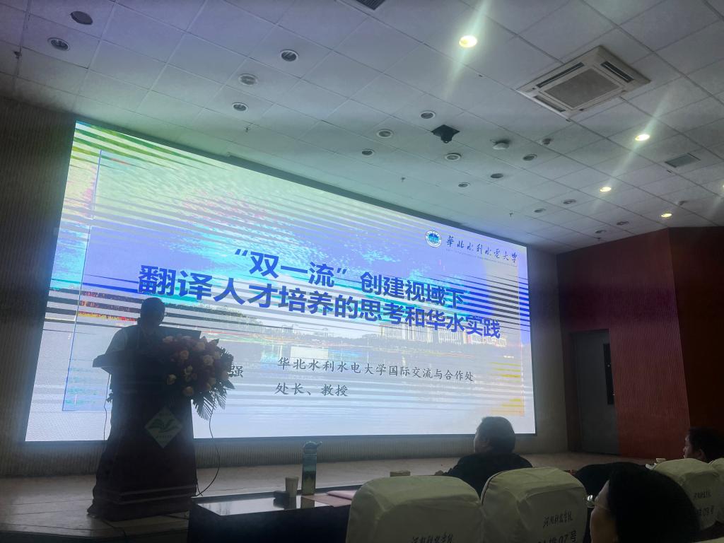 华北水利水电大学魏新强教授以“‘双一流’创建视域下翻译人才培养的思考和华水实践”为题做了主旨发言。
