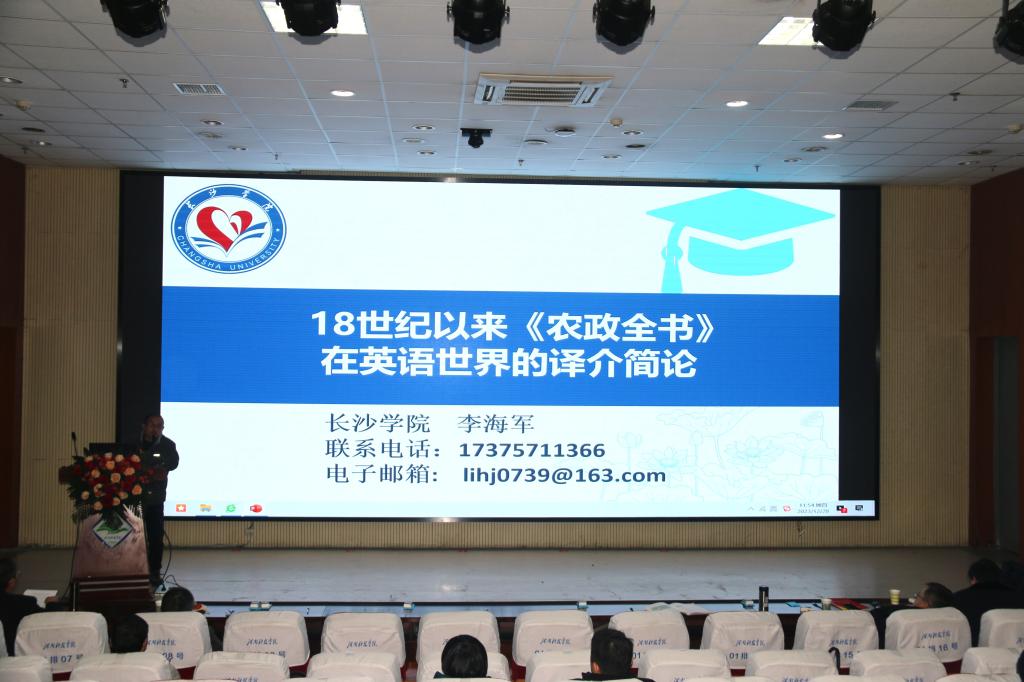 长沙学院李海军教授以“18世纪以来《农政全书》在英语世界的译介简论”为题做了主旨发言。