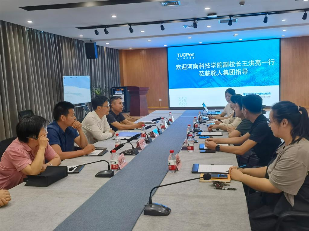 走访过程中,王洪亮一行参观了驼人集团全科医学和医疗器械博物馆,产品展示中心等,并和企业相关负责人进行了深入座谈。王洪亮介绍了学校历史沿革、办学特色、人才培养、科学研究、实习就业等情况,了解了企业发展成就、产品生产经营、成果研发推广和人才需求及培养等信息。王洪亮希望通过访企拓岗活动,双方加强交流与合作,实现优势互补、互利共赢。
