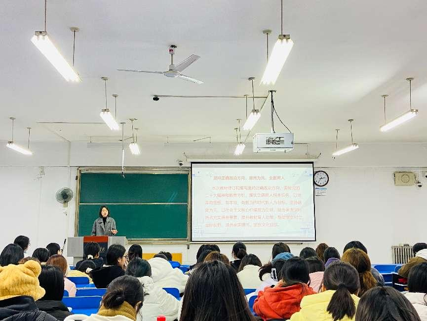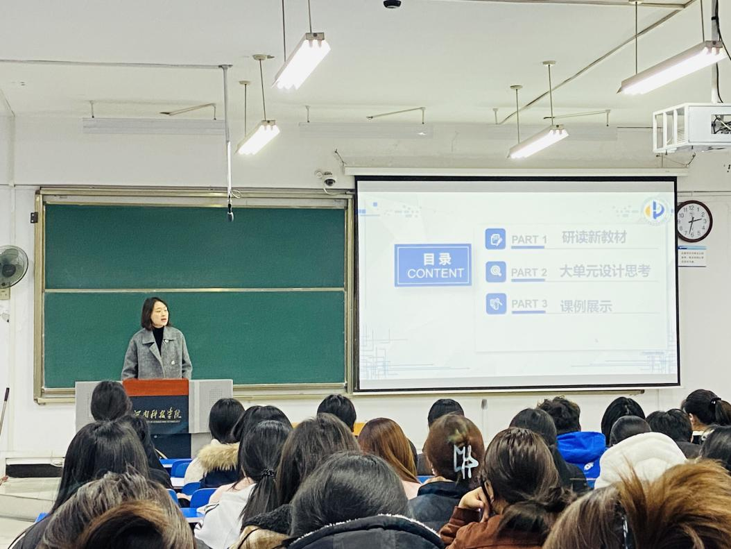 为进一步提升英语专业师范生的课程设计水平,夯实英语专业人才培养质量,11月18日,我院邀请到了新乡市第一中学英语学科高级教师、同时也是我院教师教育兼职教师的梁孟月,来校开展主题为“新课程标准下初中英语大单元整体教学听说课活动设计”的专题报告。学院骨干教师以及2022级英语专业的学生们共同参与了此次讲座。