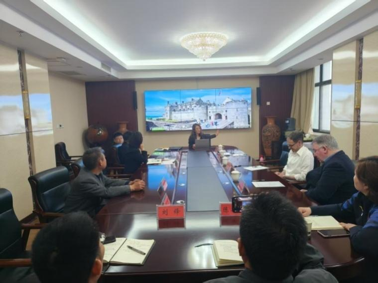 的悠久历史、学科优势、办学特色、国际合作等情况,希望两校在商科开展联合培养项目的基础上,可以拓展更多学科领域的国际合作。张芮介绍了斯特灵大学的办学优势、课程体系,及招收国际生的条件等。双方围绕国际交换生、“3+1”培养模式、语言水平标准等细节进行了详细的探讨、磋商。