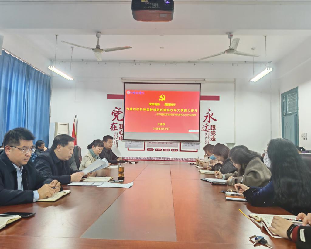 会议强调,全院要提高政治站位,坚持以习近平新时代中国特色社会主义思想为指导,将认真学习学校第四次党员代表大会精神作为当前一项重大政治任务,认真学习党代会提出的工作目标和任务,将理论学习和日常工作紧密结合,用实际行动践行百农精神,为推动学校和学院各项事业的高质量发展贡献自己的力量。