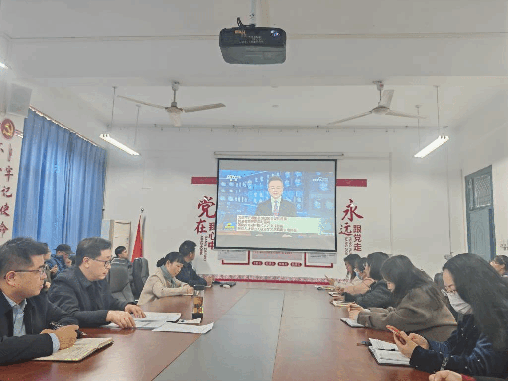 与会人员集体观看了《从春天出发——习近平总书记出席2025年全国两会纪实》以及新闻联播《习近平在看望参加政协会议的民盟民进教育界委员时强调 强化教育对科技和人才支撑作用 形成人才辈出人尽其才才尽其用生动局面》,认真学习了政府工作报告以及两会期间习近平总书记的重要讲话精神。