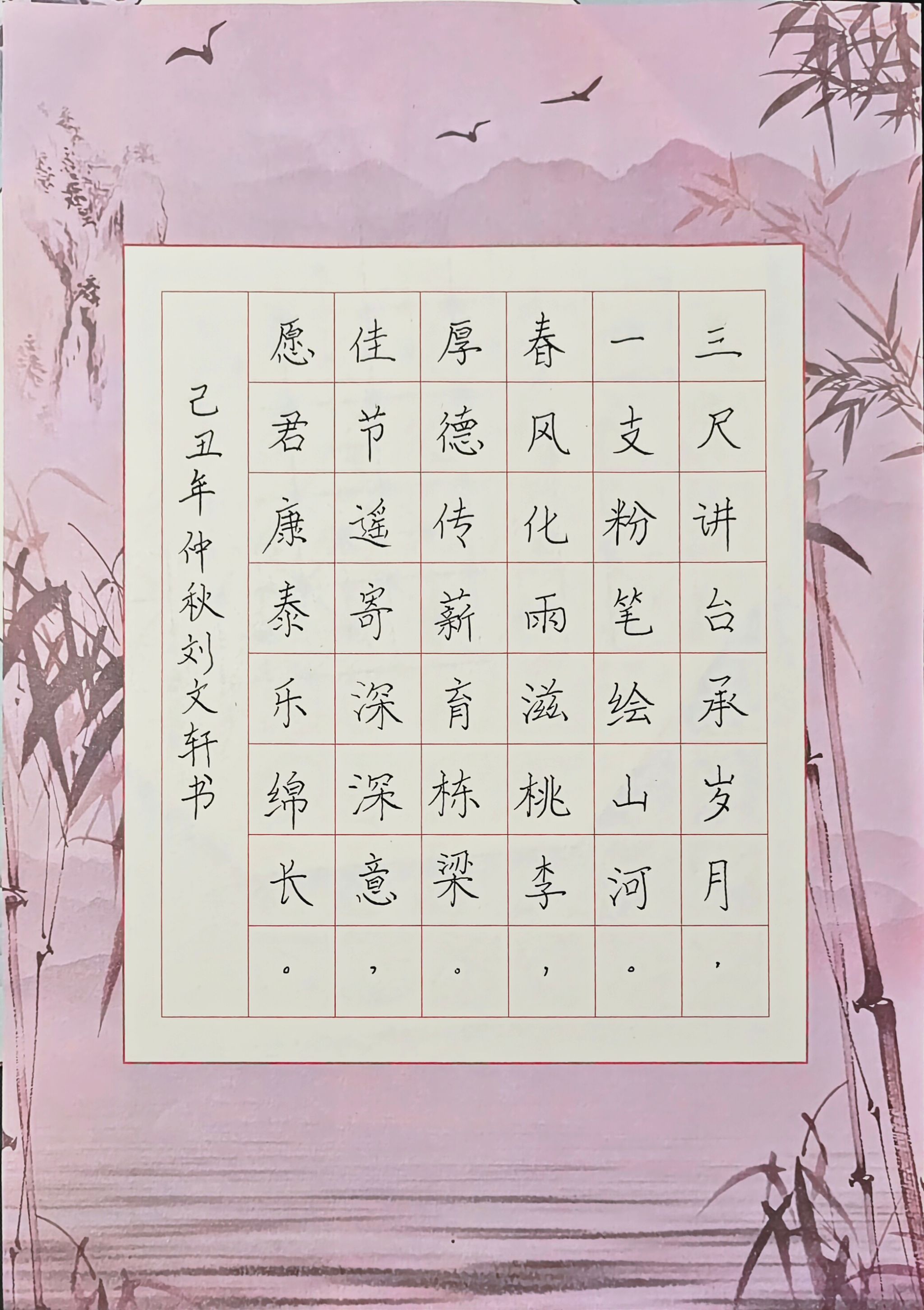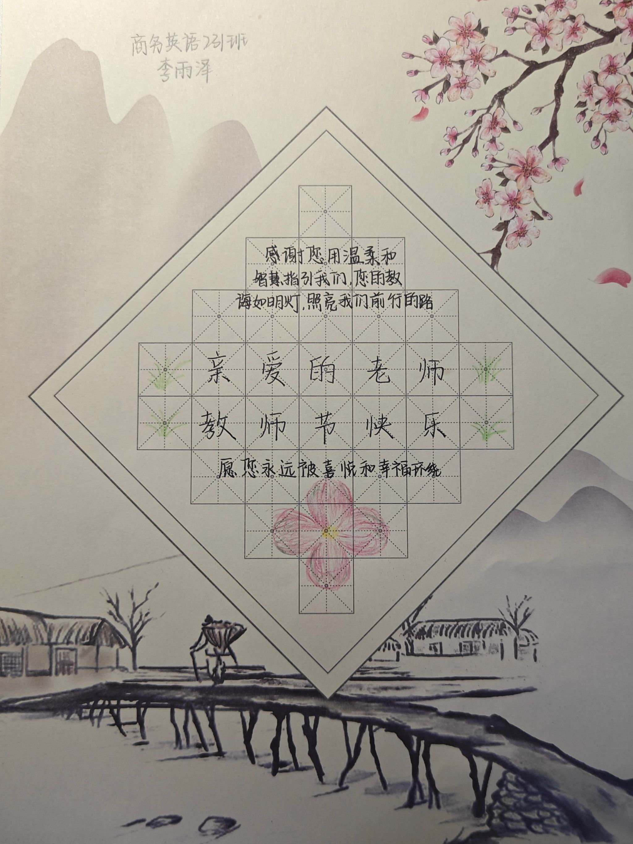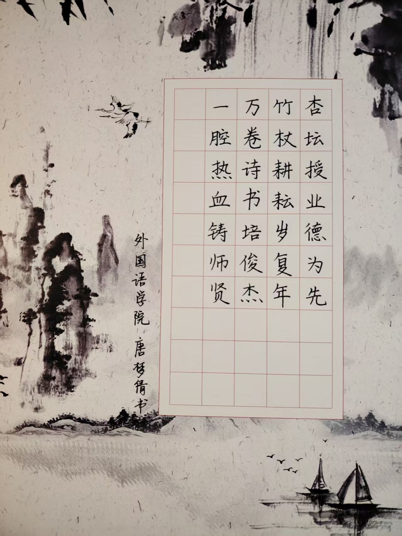 我院收集学生优秀书法作品并进行展示。一幅幅笔力遒劲、情感真挚的作品,字里行间流淌着对师恩的深深敬仰。墨香氤氲中,是学子对老师春风化雨般教诲的铭记,是对教师坚守讲台、默默奉献精神的深情礼赞。
